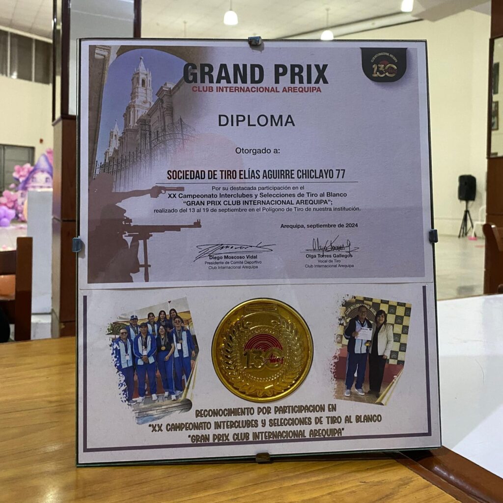 ¡Un logro destacado para la Sociedad de Tiro Elías Aguirre! El Club Internacional de Arequipa reconoce y felicita a todo el equipo de la Sociedad de Tiro Elías Aguirre por su destacada participación en el XX Campeonato Interclubes y Selecciones de Tiro al Blanco "GRAND Prix".